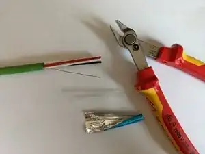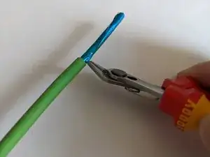 Используйте кусачки для кабелей, чтобы сделать чистый разрез на конце кабеля, который вы хотите разделать.