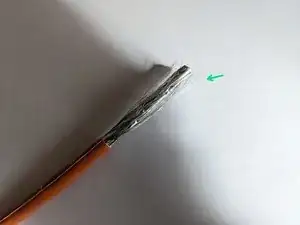 Оттяните заземляющую оплётку и оберните её вокруг первого сантиметра ещё изолированного кабеля.