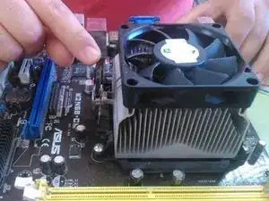 Установите сверху кулер с вентилятором, используя термопасту между ними.