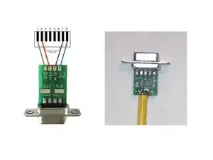 Подключите конвертер RS232 в TTL/CMOS. Подключите конвертер RS232 в TTL/CMOS к кабелю и припаяйте соединения. Примечание: Цвета, используемые в схеме подключения, не соответствуют цвету фактических проводов.
