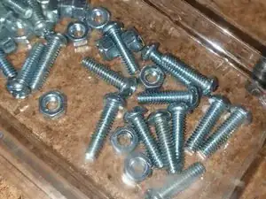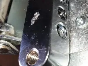 Просверлите пару отверстий в металлической планке, достаточно крупных для 1/8" x 12mm резьбового винта с круглой головкой.