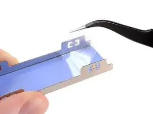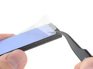 Пинцетом отогните одну сторону защитной плёнки с одной из термопрокладок.
