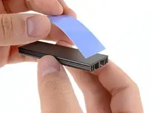 Совместите оголённую сторону термопрокладки с верхней частью радиатора.