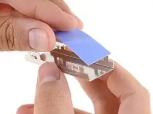 Пинцетом удалите пластиковую плёнку с термопрокладки в нижней части корпуса.