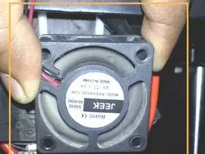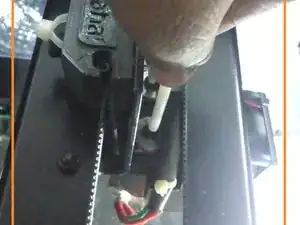 В некоторых случаях застрявшая нить не выходит. В этом случае увеличьте температуру сопла до 280 °C и снимите вентилятор охладителя сопла.