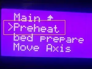Вернитесь в главное меню и проверьте, повышается ли температура сопла до установленного значения.