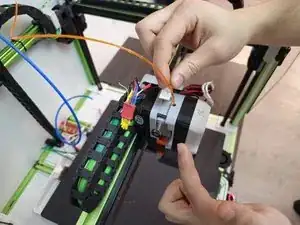 Экструдируйте 5–10 мм при рабочей температуре пластика, затем установите температуру горячего узла на 0 (комнатная температура).