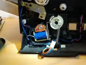Когда я открыл свой принтер, обе шестерни, которые блокируют эти реле, были «на натяжении». Поскольку мы собираемся снять реле, сначала нажмите на защёлки реле, чтобы шестерни могли свободно вращаться.