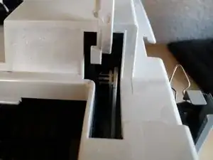 При сборке принтера позже вам придётся снова вытащить эту защёлку. Для этого может пригодиться инструмент с крючком. В качестве альтернативы можно использовать отвертку.
