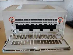 Снимите два винта. Следите за тем, откуда снят каждый винт, так как в принтере используются разные виды винтов.
