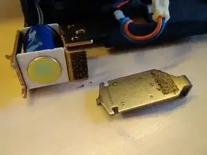 Теперь вы можете отделить крючок от реле. Видно клейкое вещество, использовавшееся в качестве демпфера.