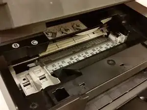 Аккуратно вытяните зажеванный кусок бумаги из принтера.