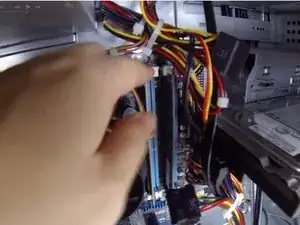 Откройте корпус и разблокируйте слоты. Вставьте планки памяти и защёлкните белые фиксаторы на концах.