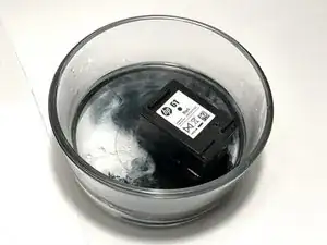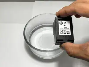 Когда начнёт вытекать чернила, аккуратно извлеките картридж из воды.