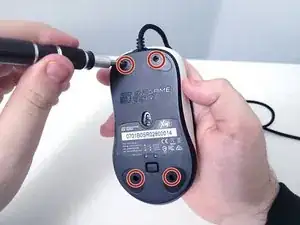 Отвинтите четыре винта 8,0 мм на нижней стороне мыши крестовой отвёрткой Phillips #1.