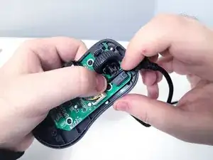 Проложите кабель между колёсиком прокрутки и оптическим датчиком Omron.