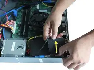 Отсоедините кабель PCIe от материнской платы, подняв его вверх.