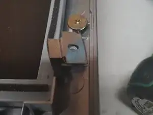 Снимите крепежные скобы в верхних углах экрана, используя отвертку с крестовым шлицем, уберите в сторону для повторной сборки.