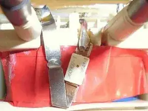 Припаяйте новый термический предохранитель (или мостик) между левым и средним контактом (на картинке только мостик - над красной лентой... (сначала не было термического предохранителя под рукой...)