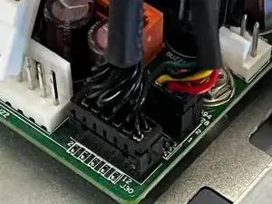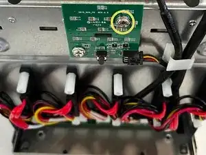 Чтобы снять вентилятор, сначала удалите длинный верхний винт на плате индикатора / кнопки. Этот винт удерживает вентилятор на месте.