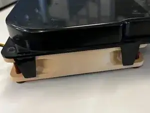 Чтобы отделить кожух от вентилятора, осторожно отожмите две более длинные защёлки с правой стороны кожуха.