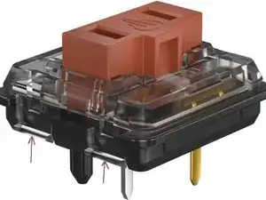 Или, как в моём случае, можно разобрать переключатель, освободив по две защёлки с каждой стороны (фиолетовый набор). Извлеките сломанный кусок колпачка изнутри и соберите переключатель обратно.