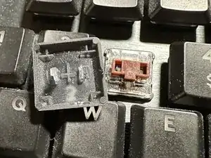 Когда припой с обоих контактов будет удалён, переверните клавиатуру и снимите переключатель с передней стороны клавиатуры.