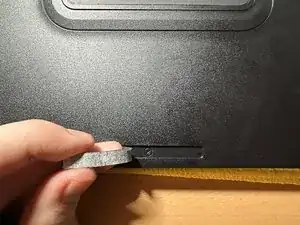 Используя ту же технику, нагрейте углы задней наклейки (зелёный набор) и, начиная с угла, подденьте край ножом, стараясь не заломать и не сильно не складывать наклейку. Снимите два винта (зелёный набор) из-под этикетки.