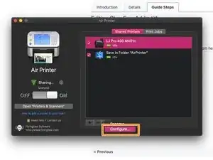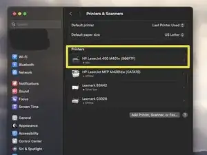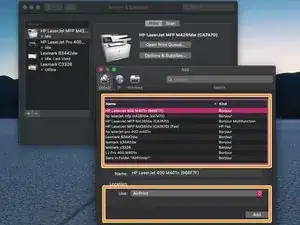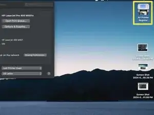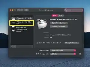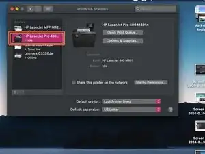 Я уже настроил Air Printer на этом Mac и добавил принтер (HP M401). Начальная конфигурация будет отличаться, так как я внес некоторые изменения ранее.