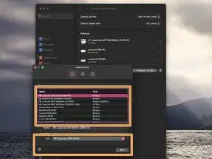 Добавьте принтер из списка принтеров.