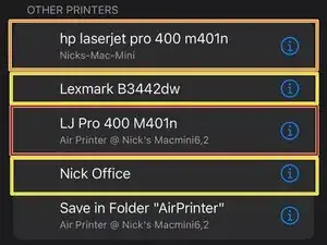 После завершения настройки Mac найдите Air Printer @ [имя компьютера], чтобы выбрать ваш принтер на затронутом устройстве iOS.