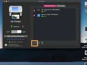 Нажмите на значок + в Air Printer и выберите принтер, который хотите добавить, из выпадающего меню. После добавления принтера он должен работать через AirPrint.