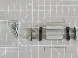 Добавьте каплю Super Lube в отверстия, через которые вставляются шарики (это поможет предотвратить их выпадение). Начинайте вставлять шарики в канал. Когда они заполнится, установите второй пластиковый вкладыш в блок MGN и закрепите фиксирующую клипсу.