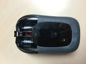 Поднимите заднюю часть верхнего корпуса мыши и сдвиньте вперед. Это должно быть довольно легко.