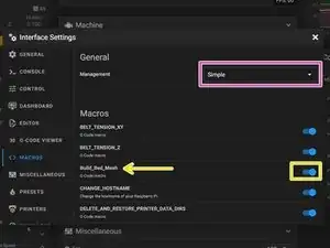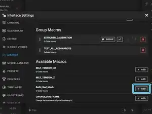 Убедитесь, что макрос Build Bed Mesh включен, как показано