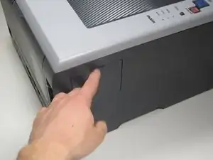 Найдите небольшую съемную панель на левой стороне принтера.