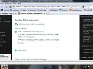 Браузер перенаправит на страницу с заголовком «Шаг второй: Выберите загрузку». Нажмите «Драйвер – Программное обеспечение установки продукта». Это предоставит список самых свежих драйверов и установочных пакетов программного обеспечения для принтера.