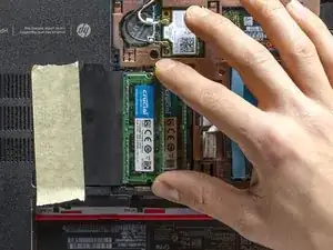Вы успешно заменили оперативную память! Поздравляем :) Теперь снимите ленту и соберите обратно сервисную крышку и батарею. Наслаждайтесь новым оборудованием, удачи!