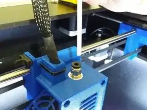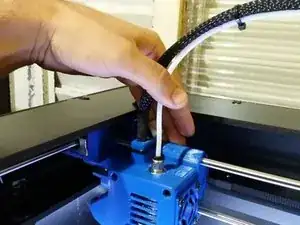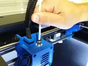 Руками вытяните PTFE-трубку из печатной головки, нажав на черную деталь в месте посадки трубки.