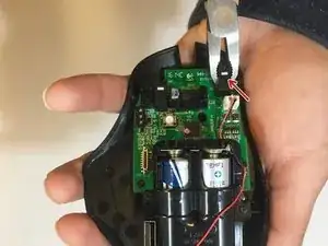 Поднимите верхнюю часть мыши от её основания (разделите мышь пополам), чтобы получить доступ к внутренним компонентам.