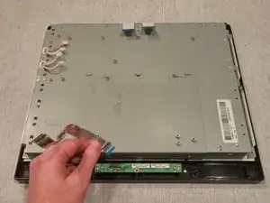 Снимите плоский гибкий кабель с платы питания под металлической крышкой.