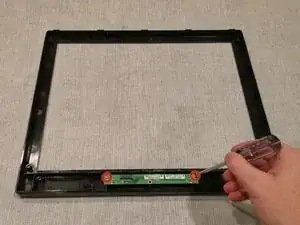 Открутите 2 винта, удерживающих плату кнопки питания.