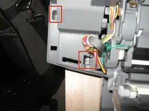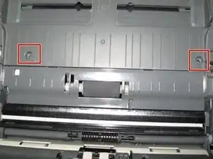 Слева от принтера есть панель, под которой находятся два винта. Снять её также может быть непросто.
