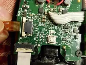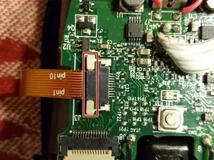 Отсоедините белый ленточный кабель, подняв вверх белый фиксирующий рычаг. После этого ленточный кабель легко выйдет из разблокированного разъёма.