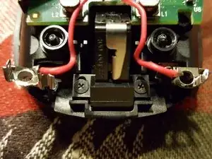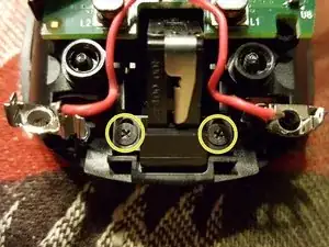 Удалите два винта из мест, отмеченных красным. Это позволит снять плату переключателя питания.