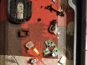 Мышь полностью разобрана. Основная печатная плата не была снята с корпуса, поскольку это не было необходимо для доступа к датчику и удаления остальных частей мыши.