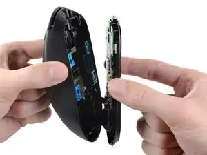 Не пытайтесь снимать нижнюю часть корпуса с верхней пока что. Они всё ещё соединены кабелями батареи и кабелем ввода.