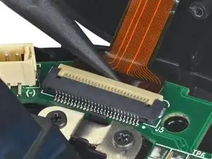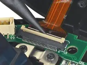 Используйте заострённый конец лопатки или ноготь, чтобы поднять маленькую шарнирную фиксирующую защёлку на ZIF-разъёме кабеля ввода ZIF connector.