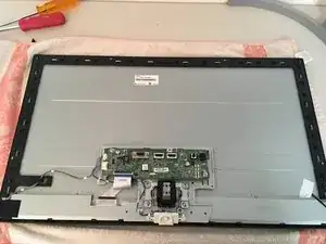 Задняя панель этого монитора удерживается пластиковыми зажимами. Перед разборкой трудно определить, где находятся зажимы и какие части снимаются.