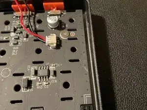 ВНИМАНИЕ: аккумулятор расположен в пластиковой нижней части. Аккумулятор подключен к печатной плате рядом с оранжевыми переключателями и USB-разъемом